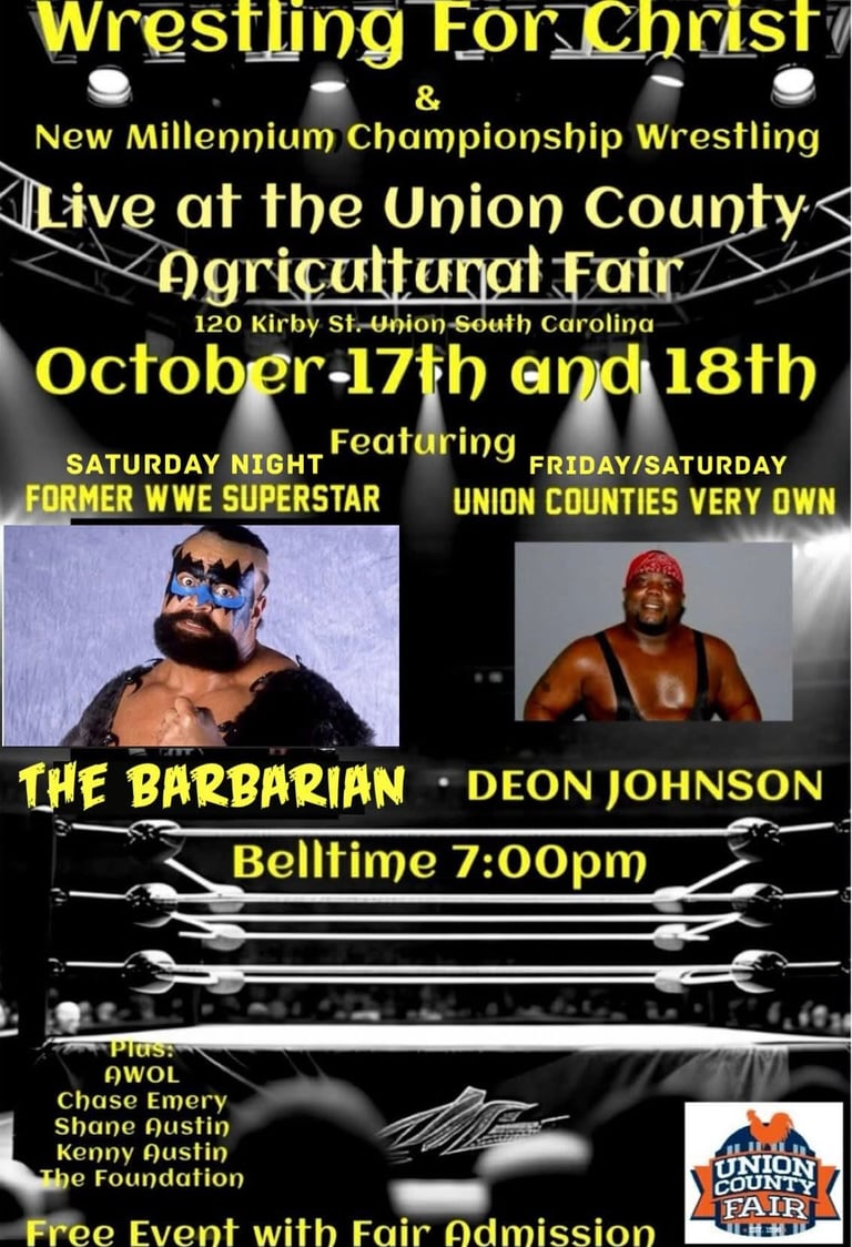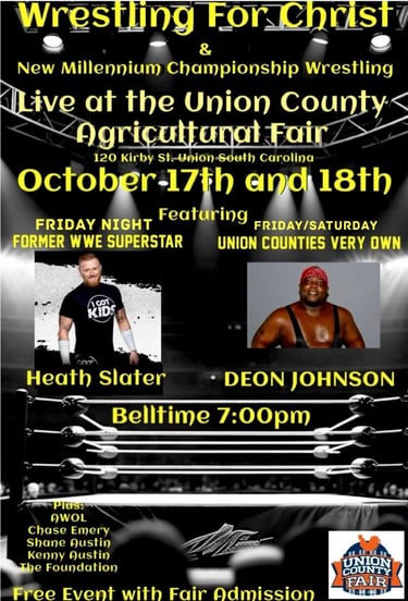 Here we come, Wrestling For Christ is bringing exciting action with such stars as Heath Slater, The Barbarian, Deon Johnson, Chase Emery, AWOL, Dylan Dollar, Kenny Austin, Shane Austin and many, many more.
